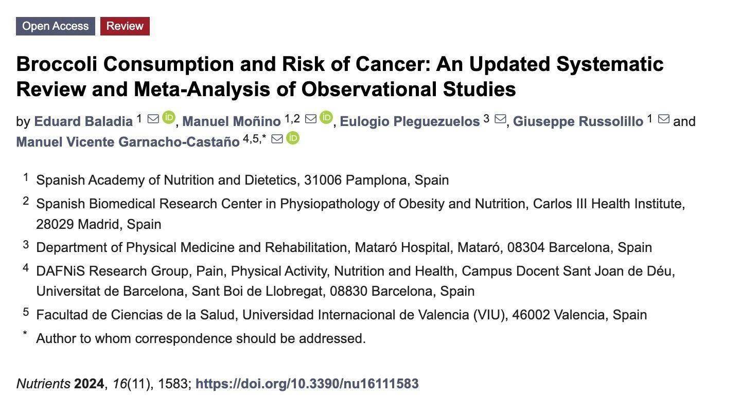 r此外,2024年发表在《营养素》上,一篇分析了超70万人的研究也发现,多吃西蓝花,总体癌症风险最多能降低36%。此外,西蓝花对预防一些特定部位癌症也有好处,比如肺癌、胃癌、结直肠癌、膀胱癌、生殖系统癌和乳腺癌。